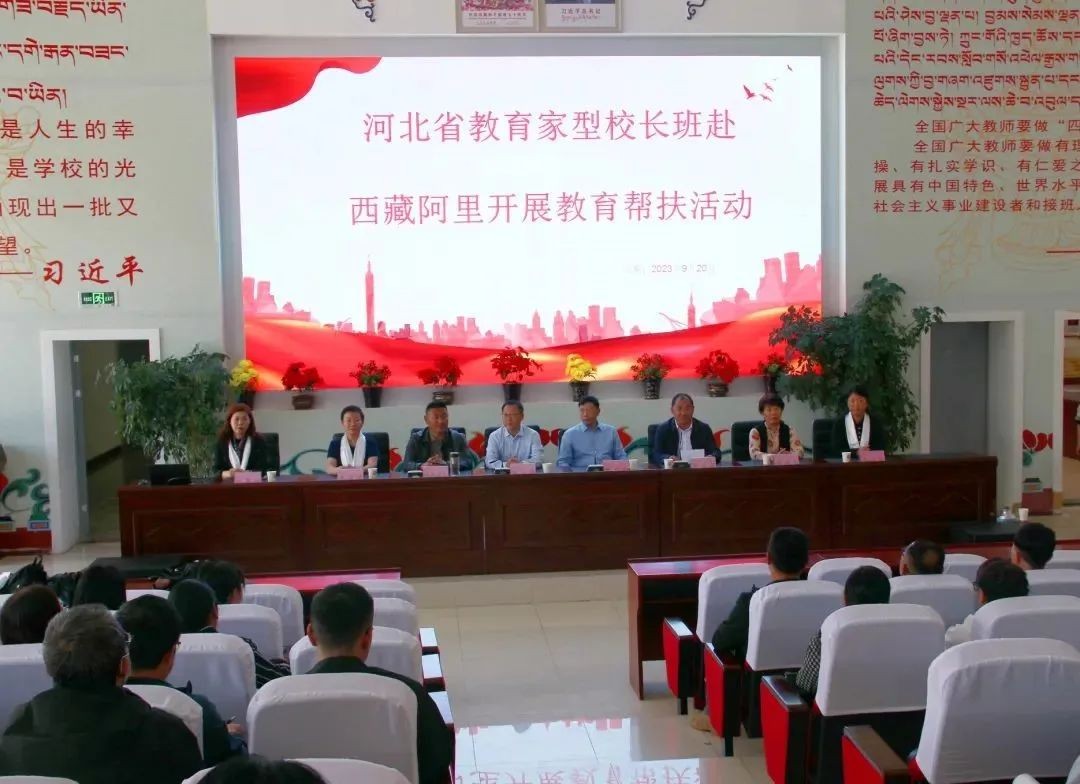 践行教育家精神,助力阿里教育发展。在河北省教育厅的指导下,按照第二期河北省教育家型校长培养方案的设计安排,河北师范大学汇华学院党委书记杨富兴、衡水中学党委书记郗会锁、石家庄市裕东小学教育集团总校长李丽英、唐山市迎宾路小学校长周雅会、邢台市清河五中校长姜新华、雄安新区容和海棠幼儿园园长范德丽等六位书记、校(园)长于9月18日至9月28日组团赴西藏阿里札达县-普兰县-改则县-日土县等边境地区开展教育帮扶,帮扶活动得到阿里地区教育局的大力支持。