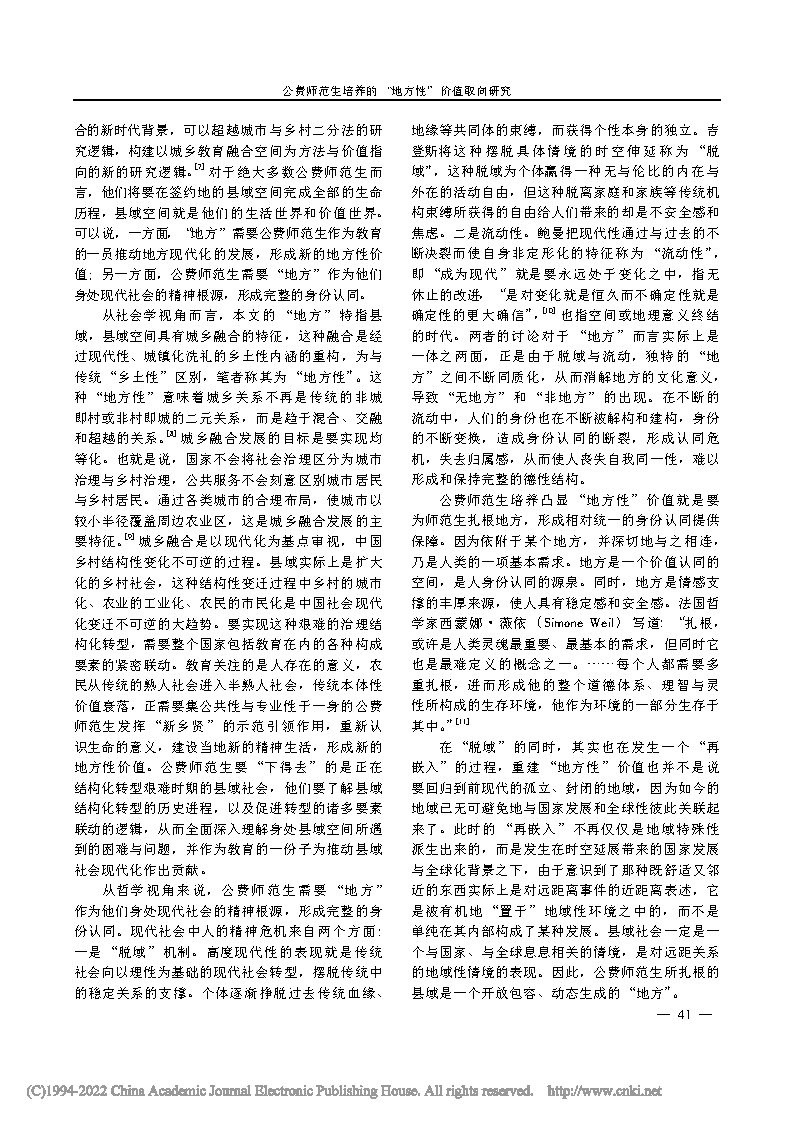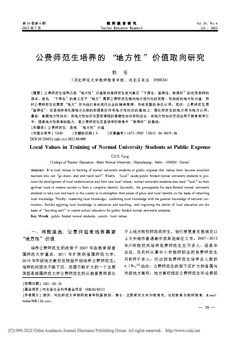 公费师范生培养的“地方性”价值取向研究