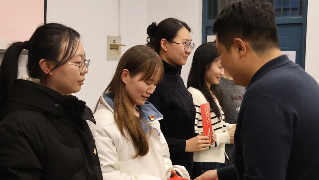 张新桥、潘新民、王梅为34名在校过“政治生日”的学生党员送上专属政治生日贺卡。